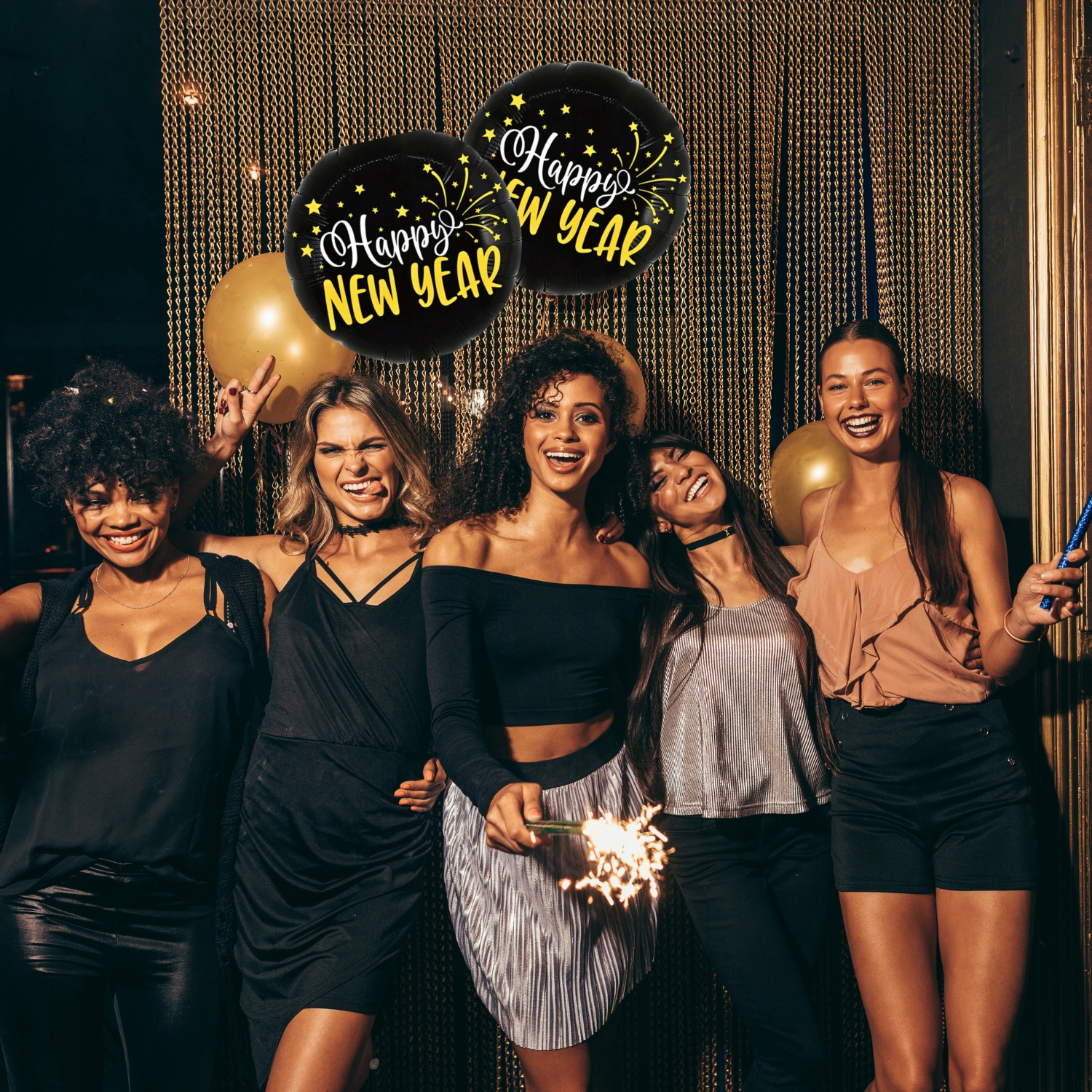 • Kolory: Czarny, złoty, biały – klasyczne barwy Sylwestra.