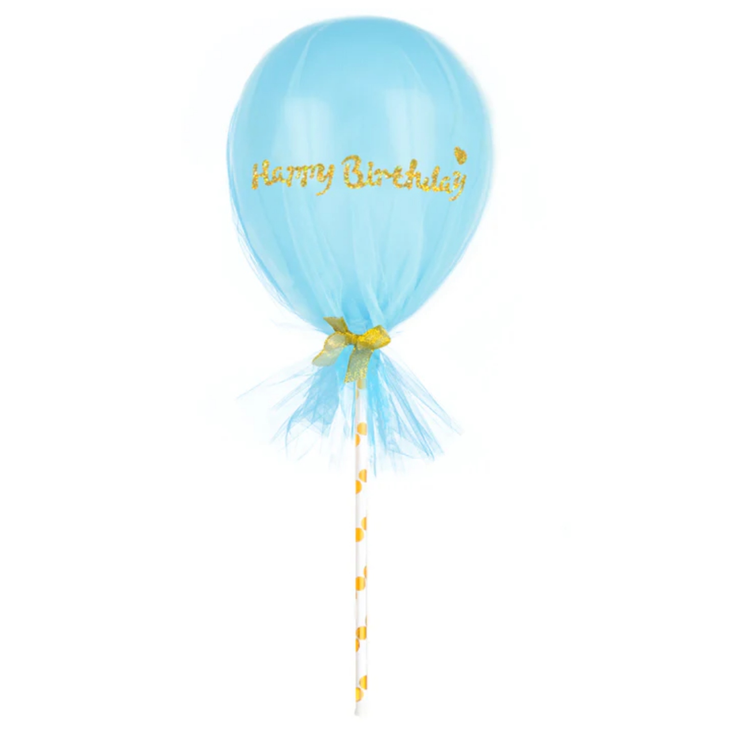 Dzięki wyjątkowemu połączeniu tiulu, złotej kokardki i eleganckiego napisu, balon „Happy Birthday” będzie stylowym dodatkiem do każdej urodzinowej dekoracji. Idealny na eleganckie i nowoczesne przyjęcia.