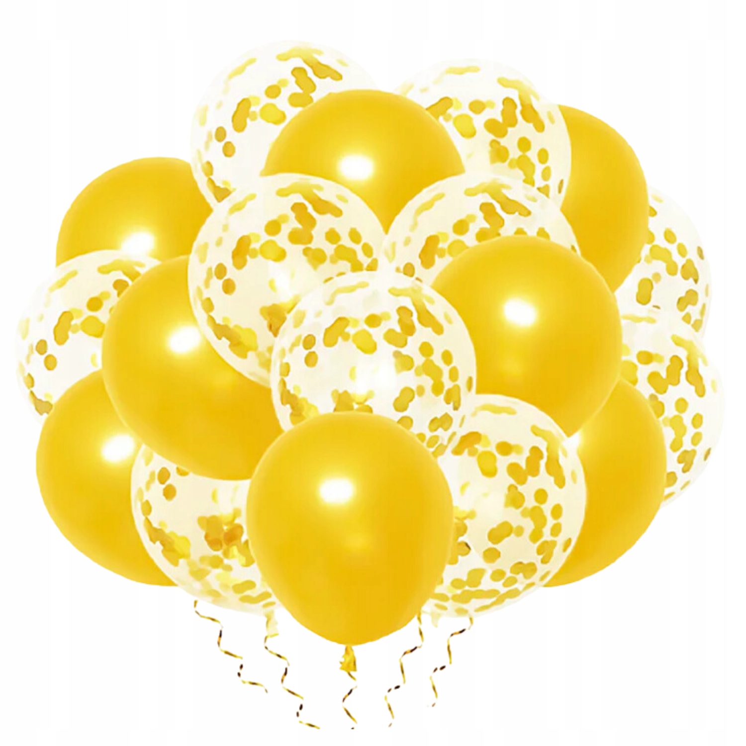 Rozmiar: 12 cali | Kolor: złoty + transparentne ze złotym konfetti | Ilość w zestawie: 20 szt.