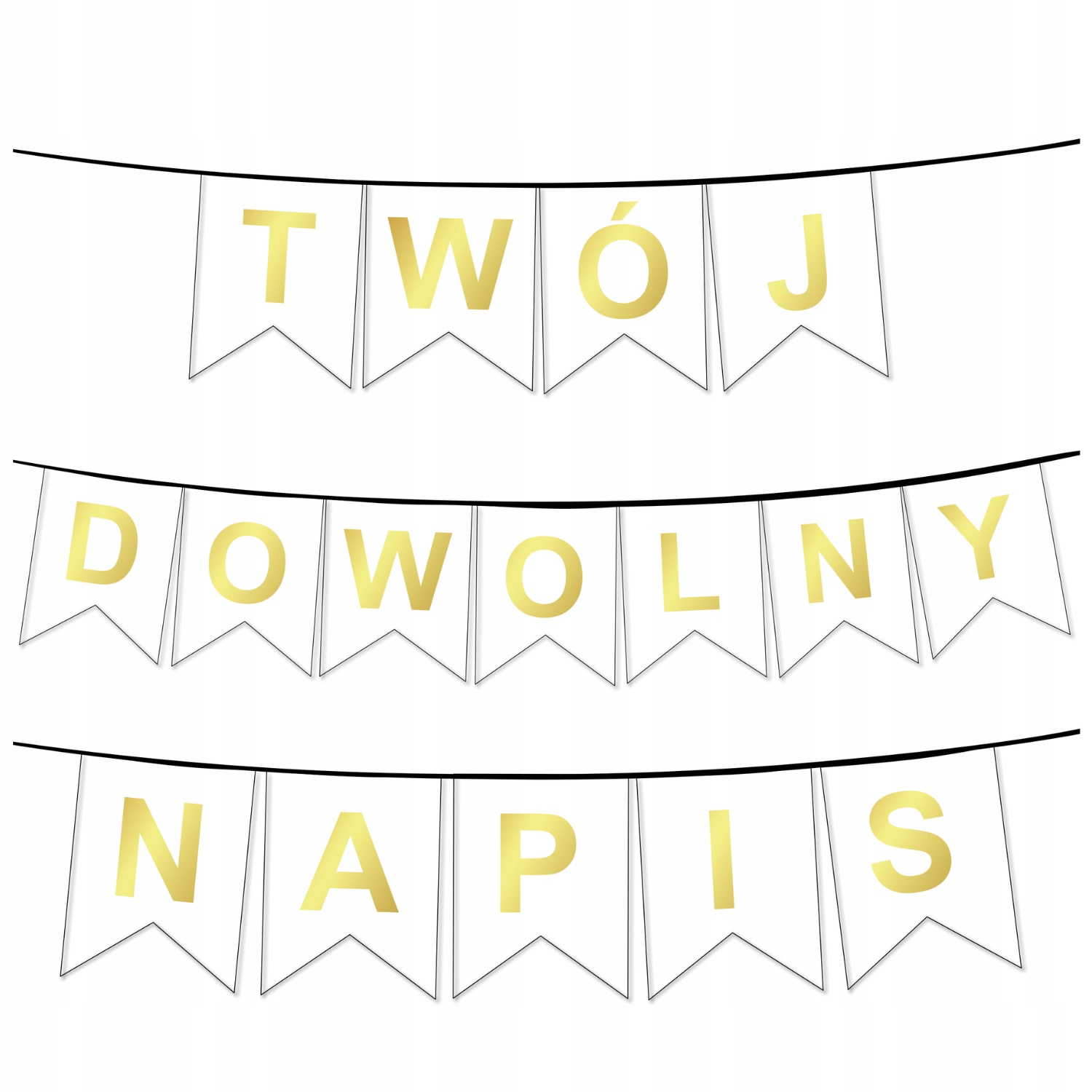 Chcesz stworzyć unikalną dekorację na swoją uroczystość? Personalizowany baner z dowolnym tekstem to elegancka i wszechstronna ozdoba, która pozwala na pełną personalizację – możesz dodać imię, hasło, cytat lub dowolne słowo. Baner składa się z maksymalnie 20 plakietek, co pozwala na stworzenie krótkiego, ale wyrazistego napisu. Klasyczna biel i złote litery nadają dekoracji luksusowego i ponadczasowego wyglądu.