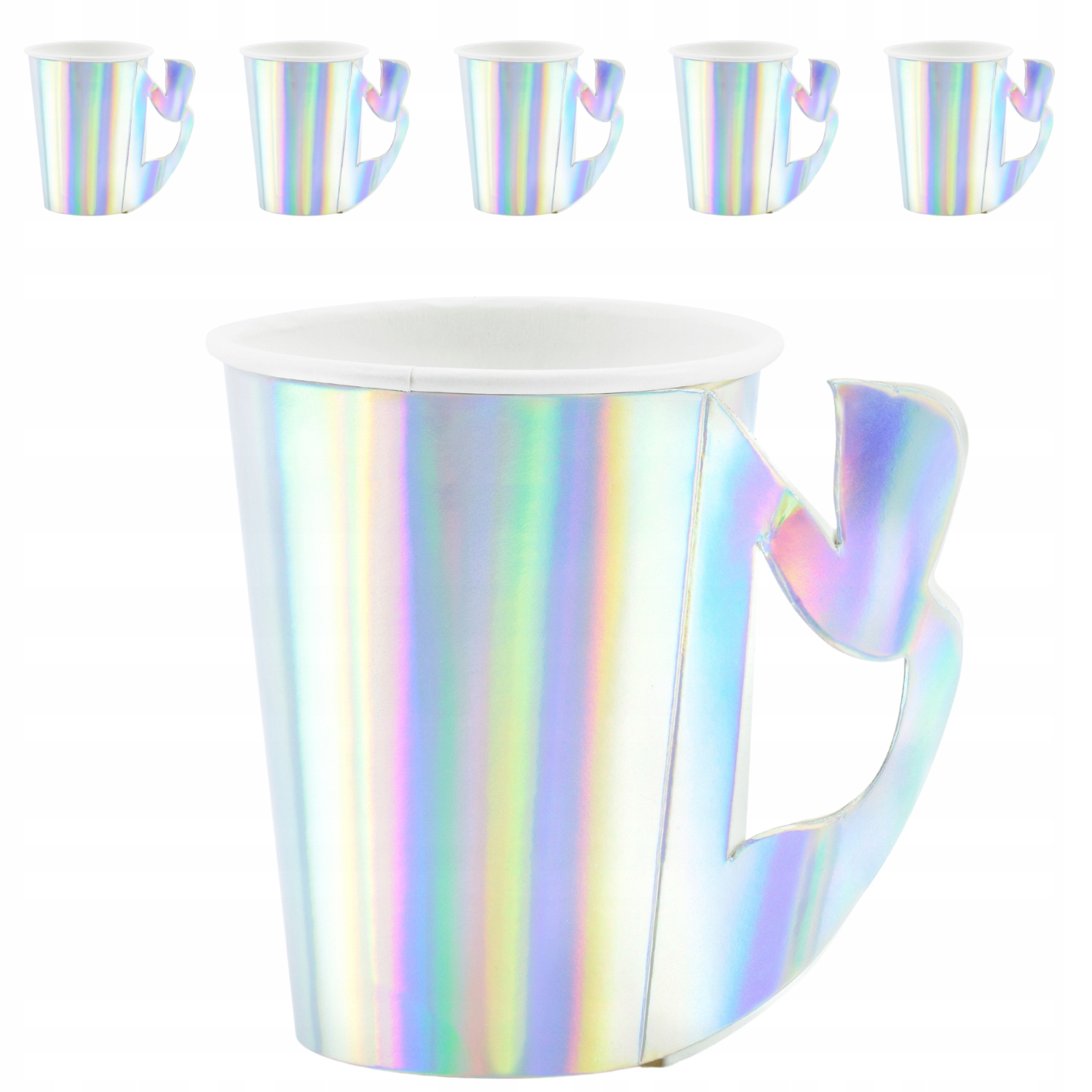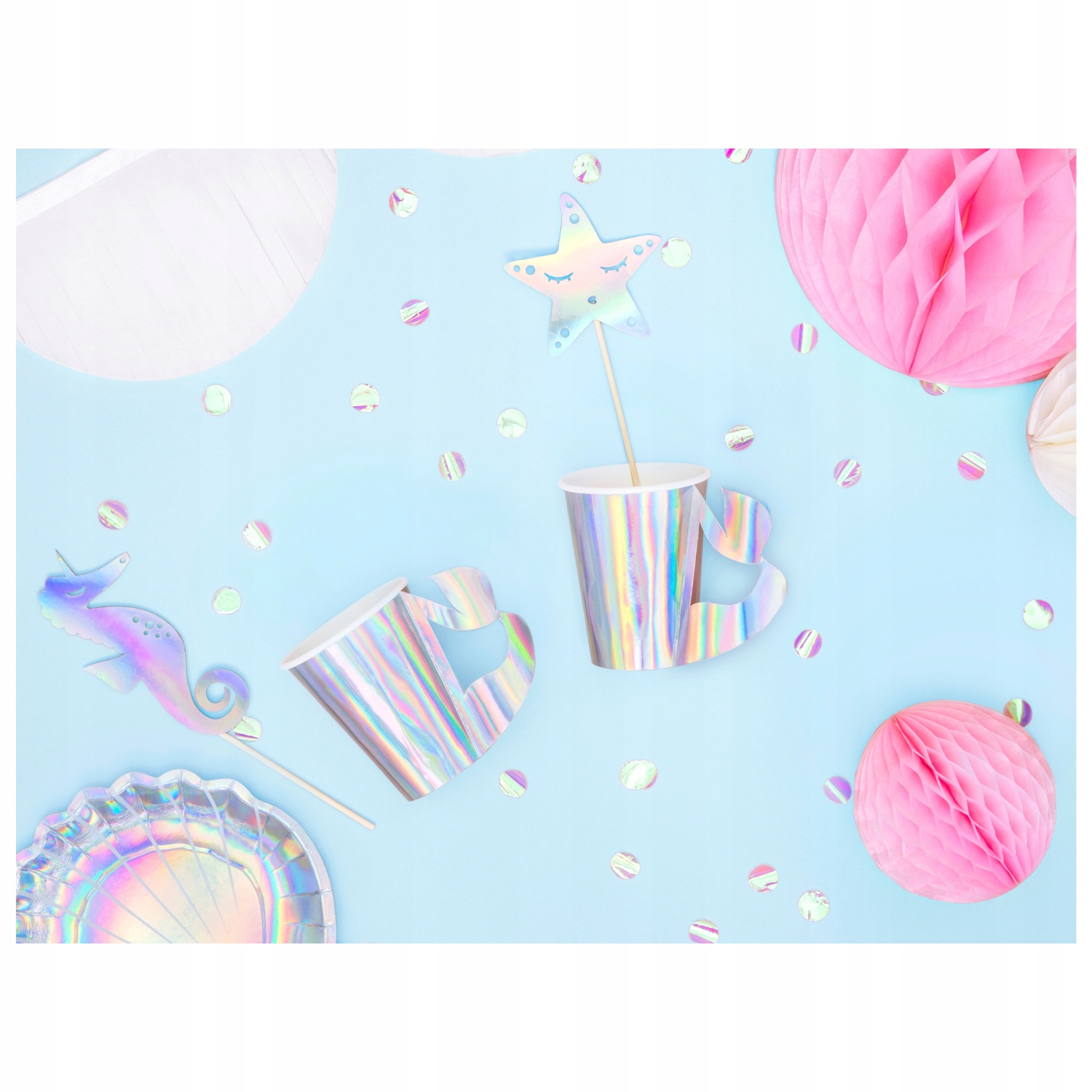 ✨ Kubeczki papierowe Syrenka – holograficzne, opalizujące, 220 ml (6 szt.) 🧜♀️