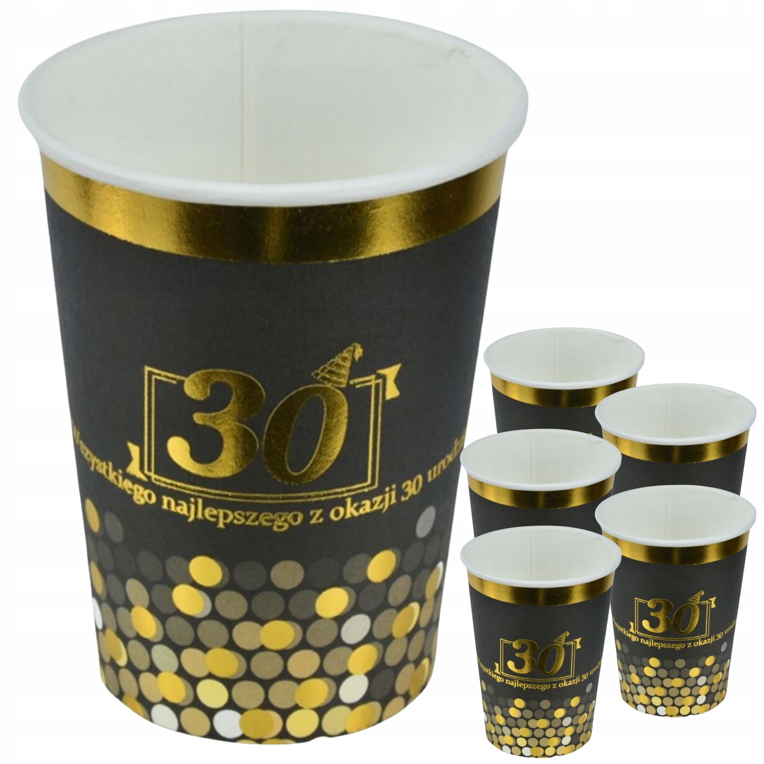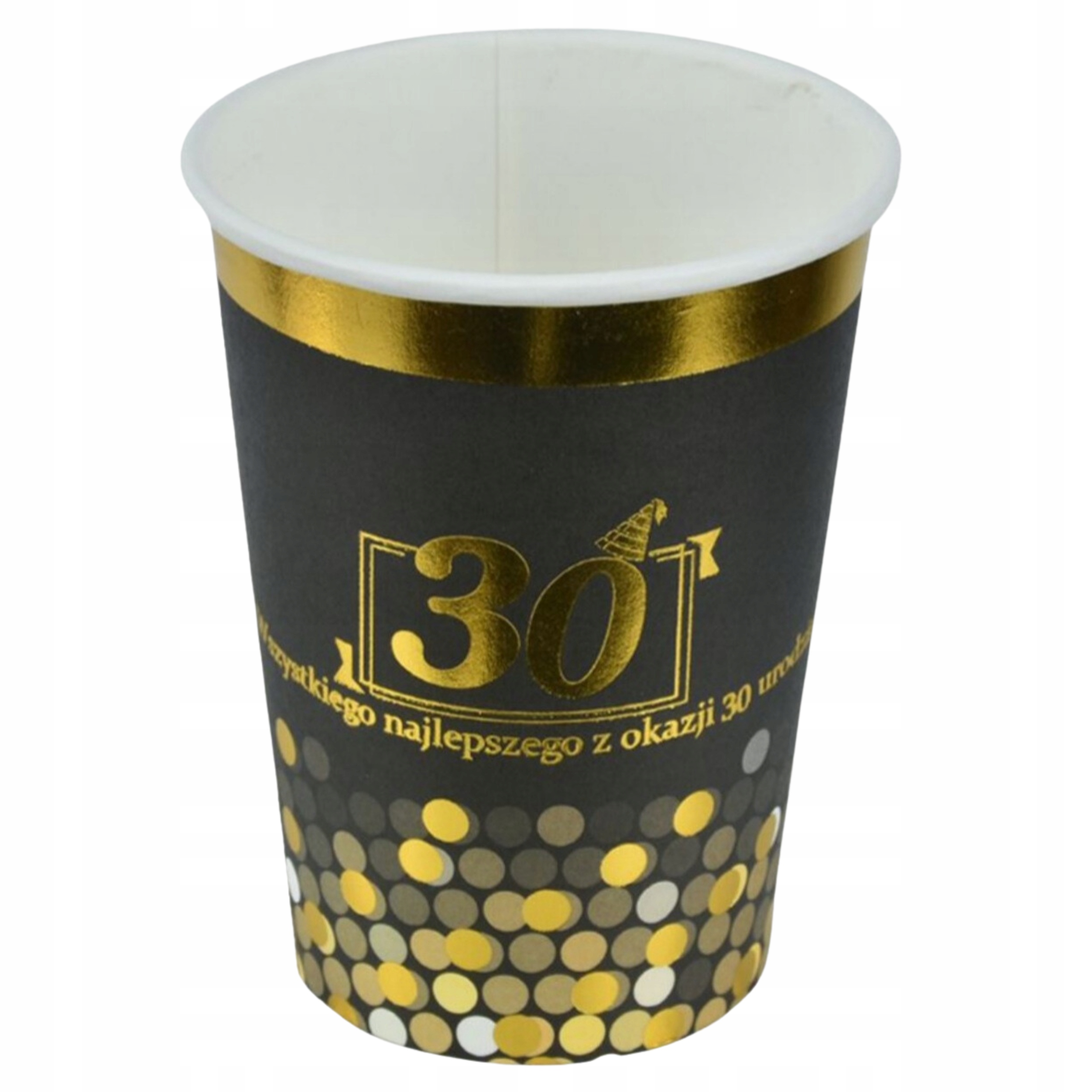 Kubki Papierowe Kubeczki Jednorazowe CZARNE ZŁOTE na 30 URODZINY Dekoracje