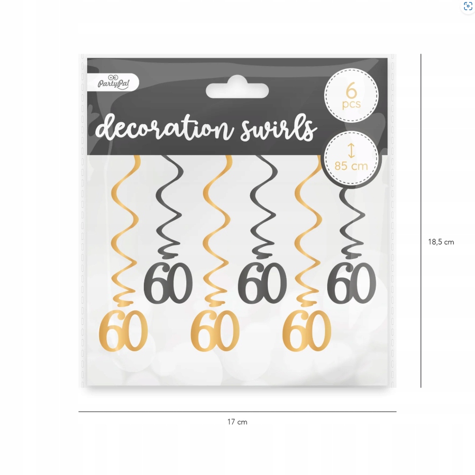 Planujesz wyjątkowe przyjęcie z okazji 60. urodzin? Dodaj efekt „wow” dzięki świderkom dekoracyjnym na 60 urodziny! Te lekkie, wiszące dekoracje w kolorze złotym i czarnym pięknie się mienią i poruszają przy każdym powiewie powietrza, tworząc dynamiczną i elegancką oprawę imprezy. Cyfry „60” na końcach świderków natychmiast przyciągają uwagę i nadają przestrzeni urodzinowy charakter. Doskonałe do zawieszenia nad stołem, w wejściu, na ścianie lub jako tło do zdjęć.