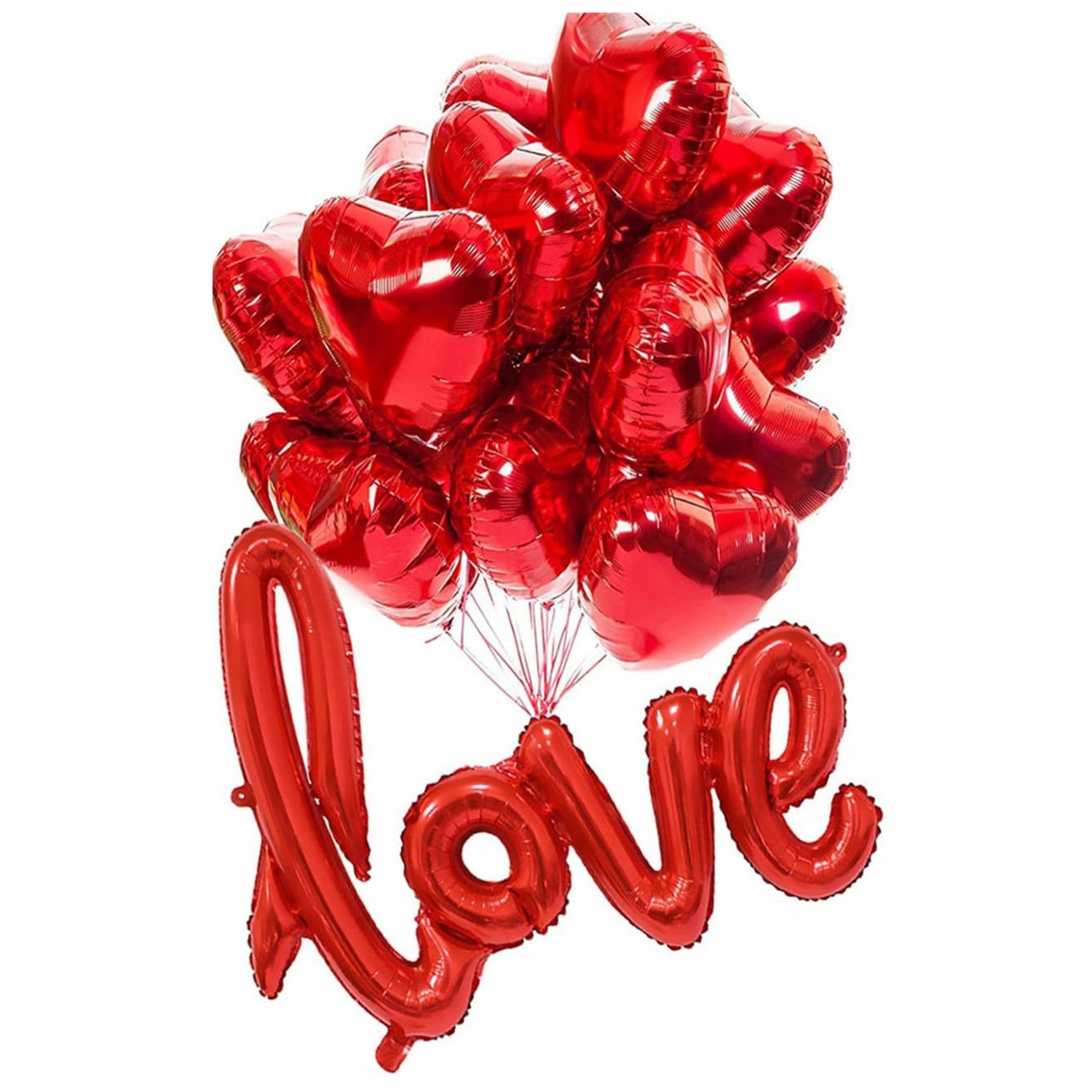 Podaruj swojej drugiej połówce wyjątkową niespodziankę! Zestaw balonów na Walentynki to romantyczna dekoracja, która stworzy niepowtarzalny klimat podczas święta zakochanych. W komplecie znajduje się napis Love oraz siedem czerwonych balonów w kształcie serc – idealne połączenie, które wyrazi więcej niż tysiąc słów.