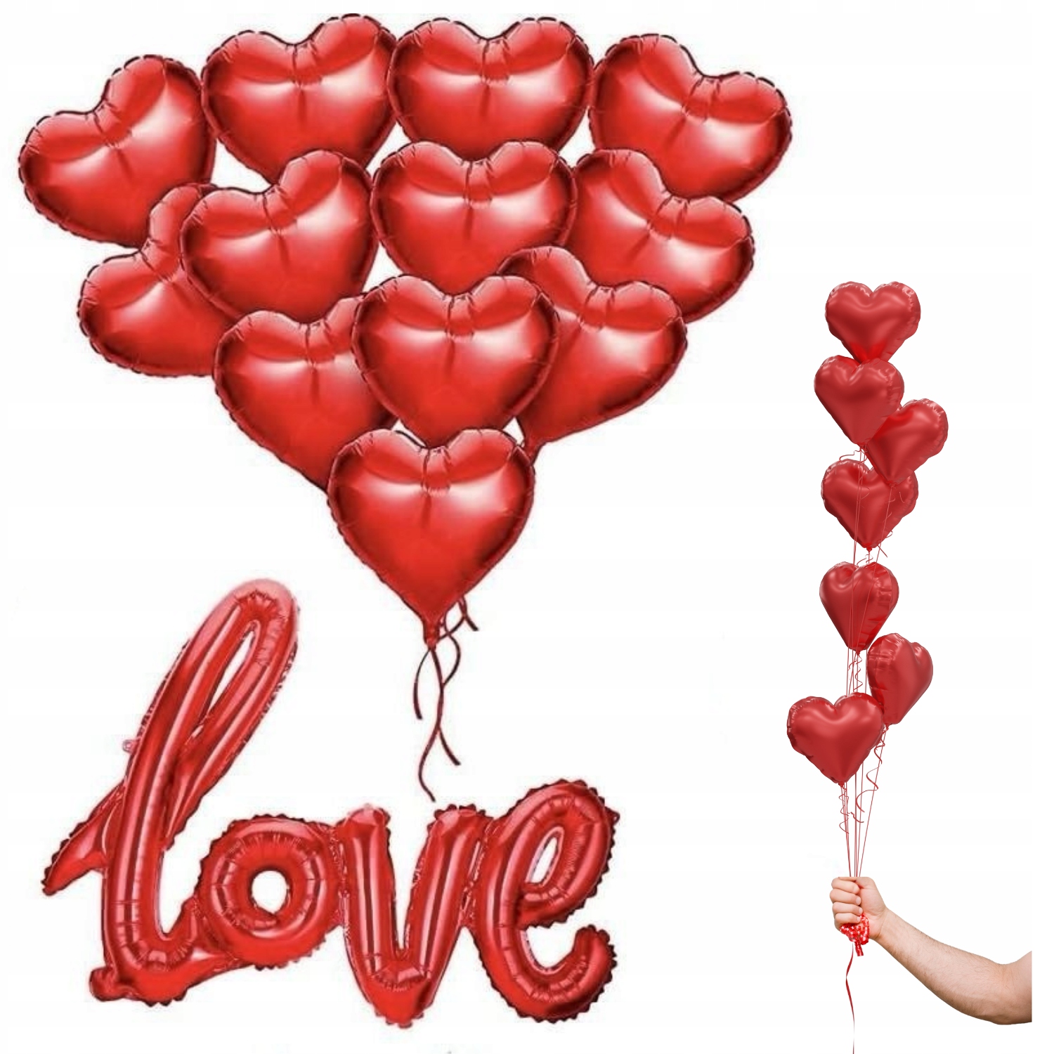 - 7 balonów foliowych w kształcie serc (czerwone)